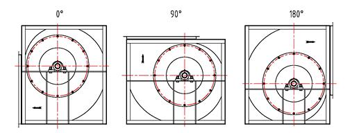 2.出风方向 EDF系列风机可制成0°、90°、180°三种出风方向,如下图所示。