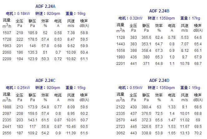 不同型号详细参数表: